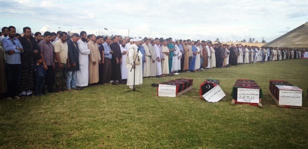 On a recent afternoon, hundreds gathered in Misrata’s City Stadium around the caskets of eight fighters who went missing in March 2011. One woman whose son’s name was Abdellaziz says she always had the feeling that he was coming back.