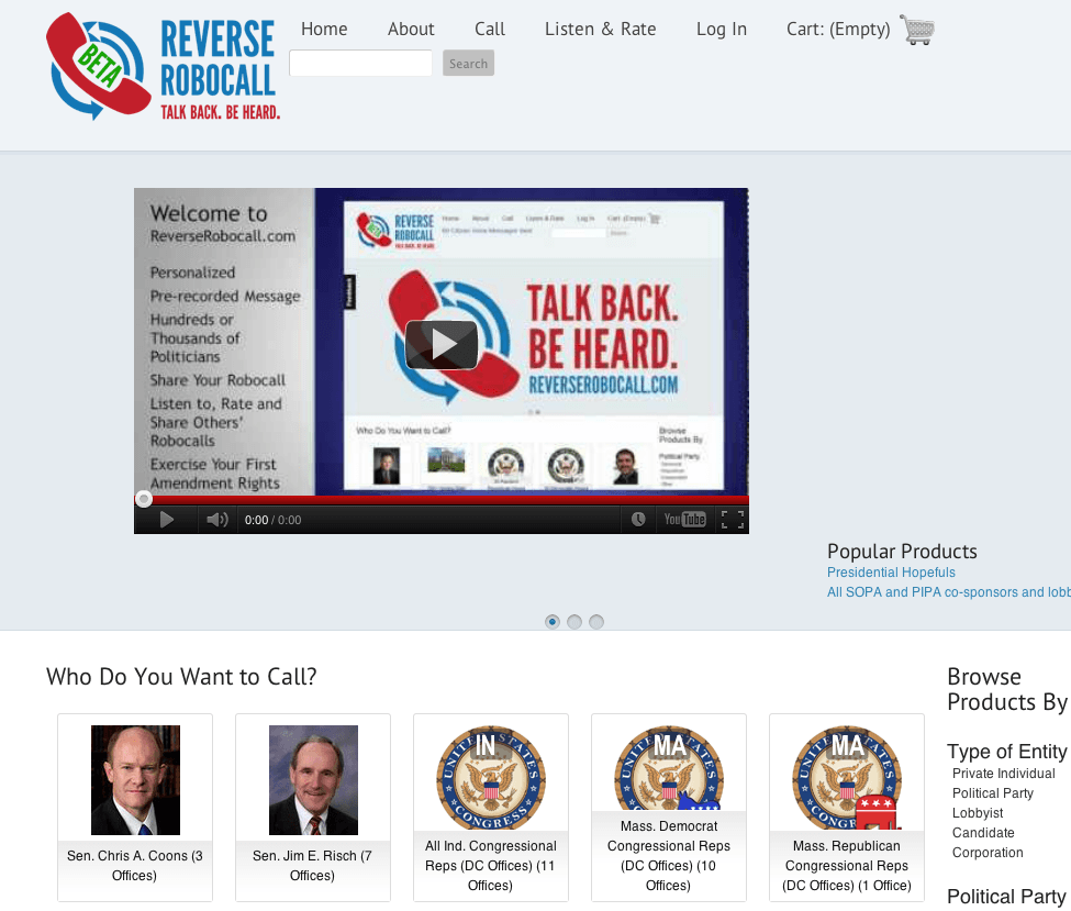 If you’re interested in getting revenge against those political calls that interrupt your dinner, a new website has set itself up just for you. (Screenshot of ReverseRobocalls.com.)