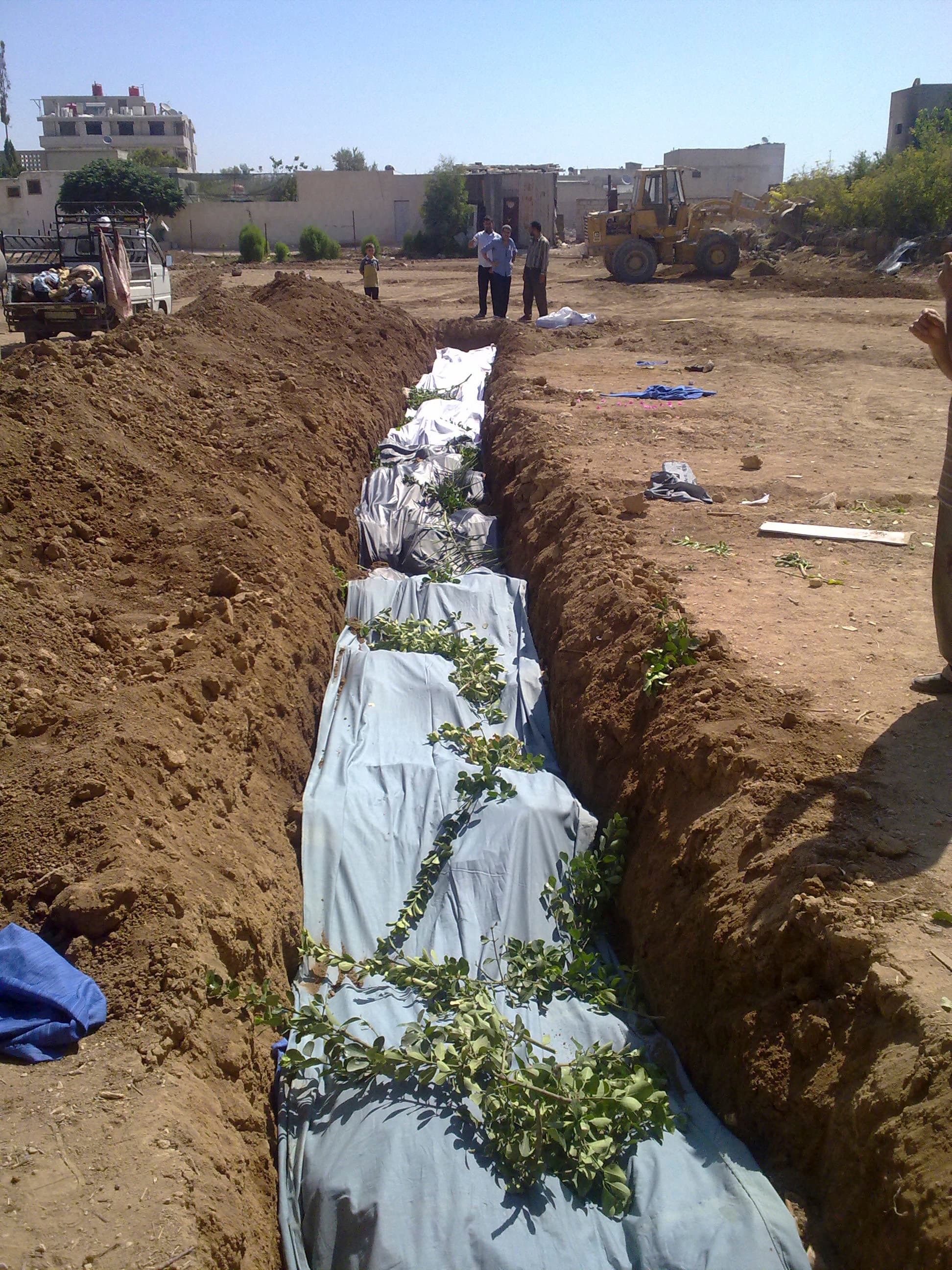 This photo, supplied by the Syrian opposition, shows the mass graves that it blames on Syrian regime executions in the city of Daraya. Other provided photos of the same location show multiple bodies. (Photo by Reuters.)