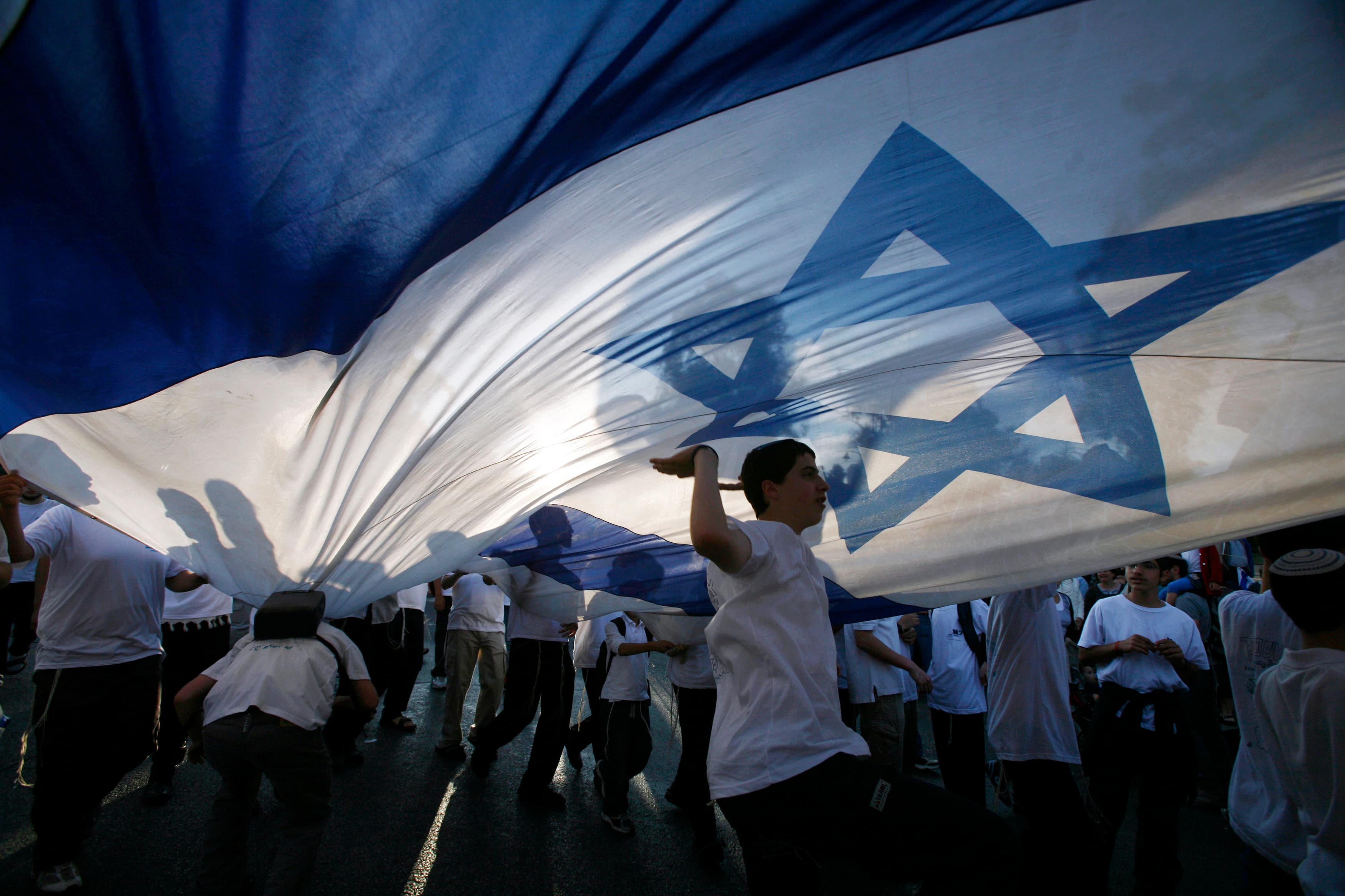 Israeli youths dance under a huge national flag during a parade marking Jerusalem Day in Jerusalem May 20, 2012. (Photo by Baz Ratner/Reuters.)