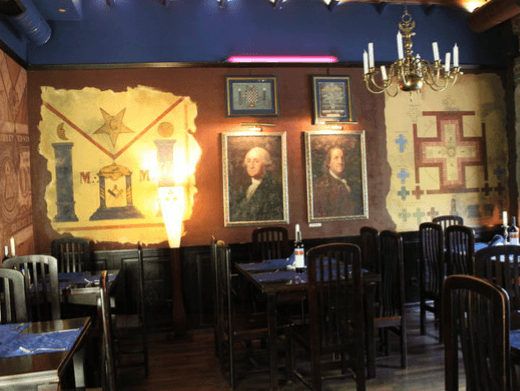 Yurko Nazaruk has opened a series of theme restaurants in Lviv, Ukraine, that, depending on who you ask, either mock or pay tribute to the country’s history. This is his freemason themed restaurant. (Photo by Daniel Estrin.)
