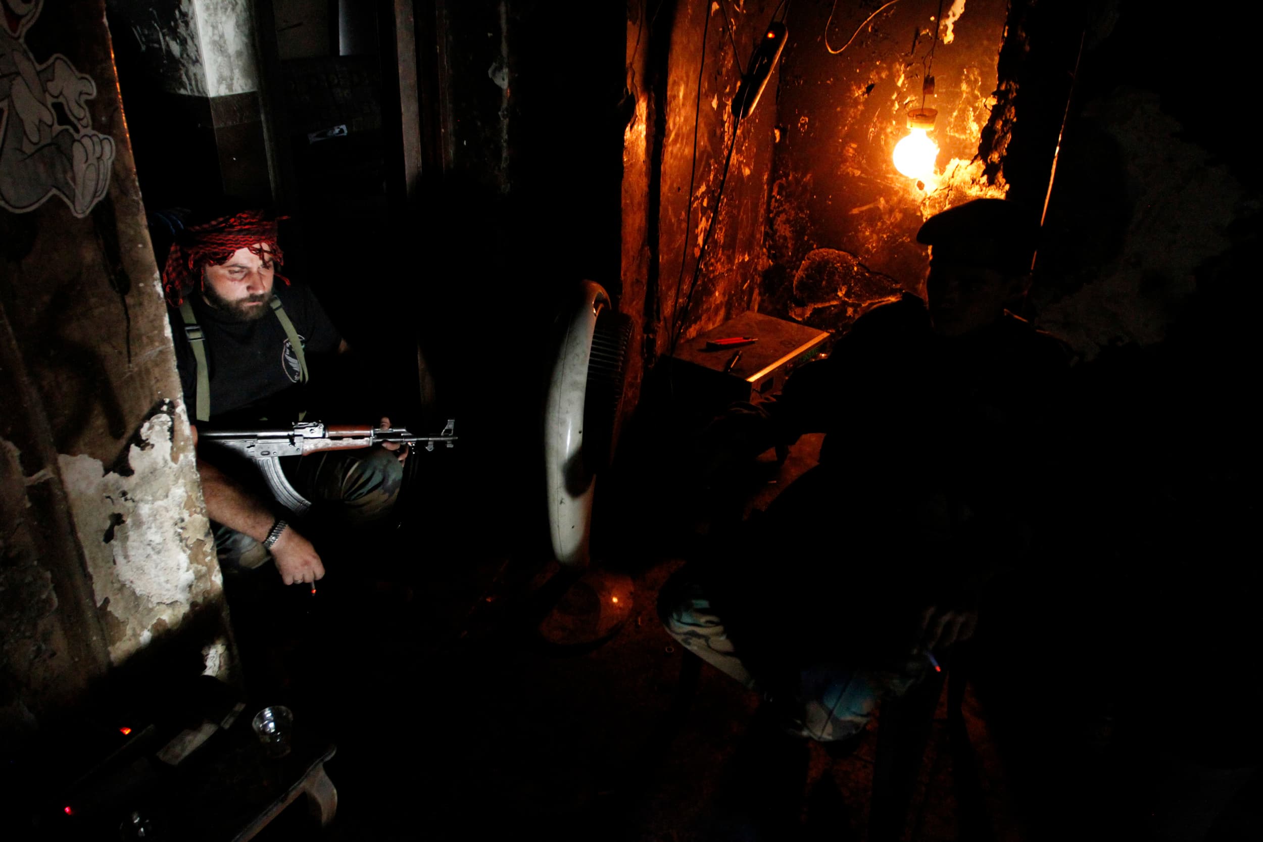 Free Syrian Army fighters smoke cigarettes as they rest in Aleppo’s Qastal al-Harami neighbourhood September 11, 2013. REUTERS/Nour Kelze (SYRIA – Tags: CIVIL UNREST CONFLICT) – RTX13HR4