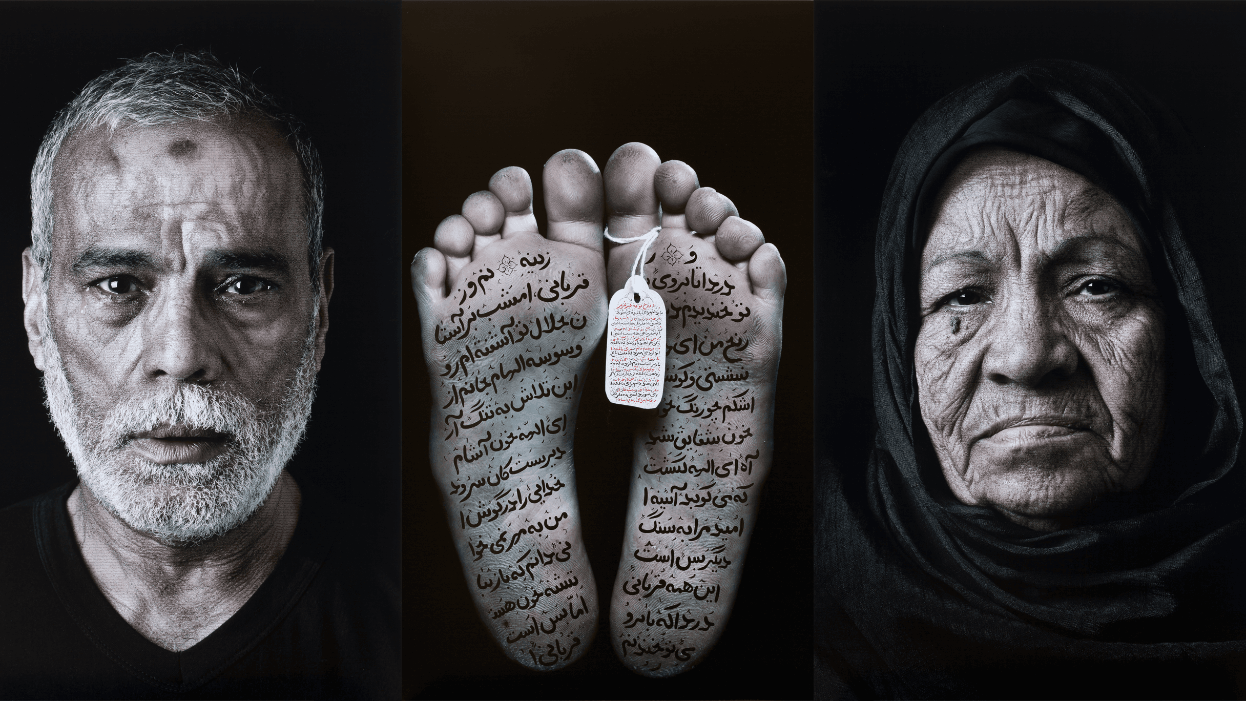 “One after another, images of people that were dead in the morgue, and their feet with a simple tag between their feet, that sort of identified who they were,” Neshat says. “I found these images so disturbing in the way that, at the end, your life is reduced to this little tag that identifies you.”