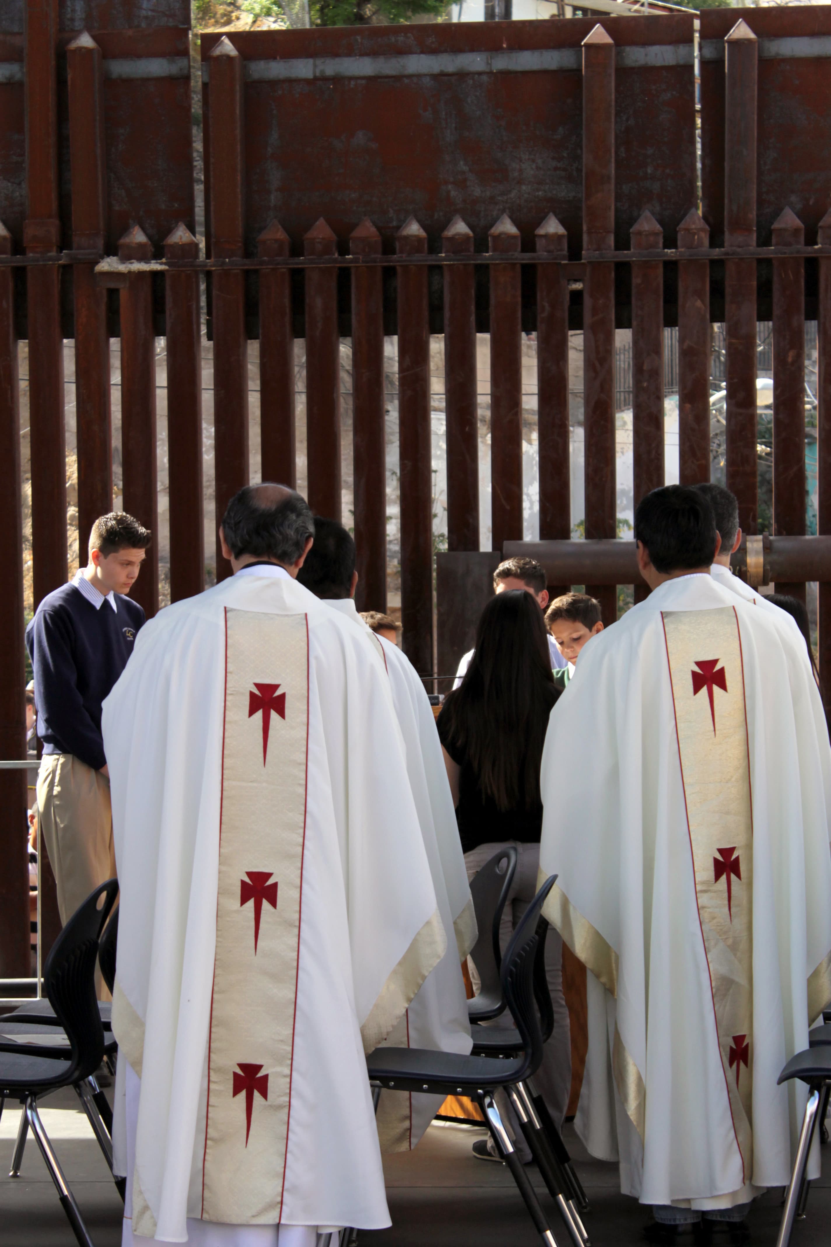 Standing in front of a 30-foot-high rusted gate that separates the US from Mexico, eight bishops, from El Paso to Atlanta, prayed in both Spanish and English. They faced a crowd of about 800 people on the American side. Behind them, on the Mexican side of the fence, a hundred or so people peeked through the slates.