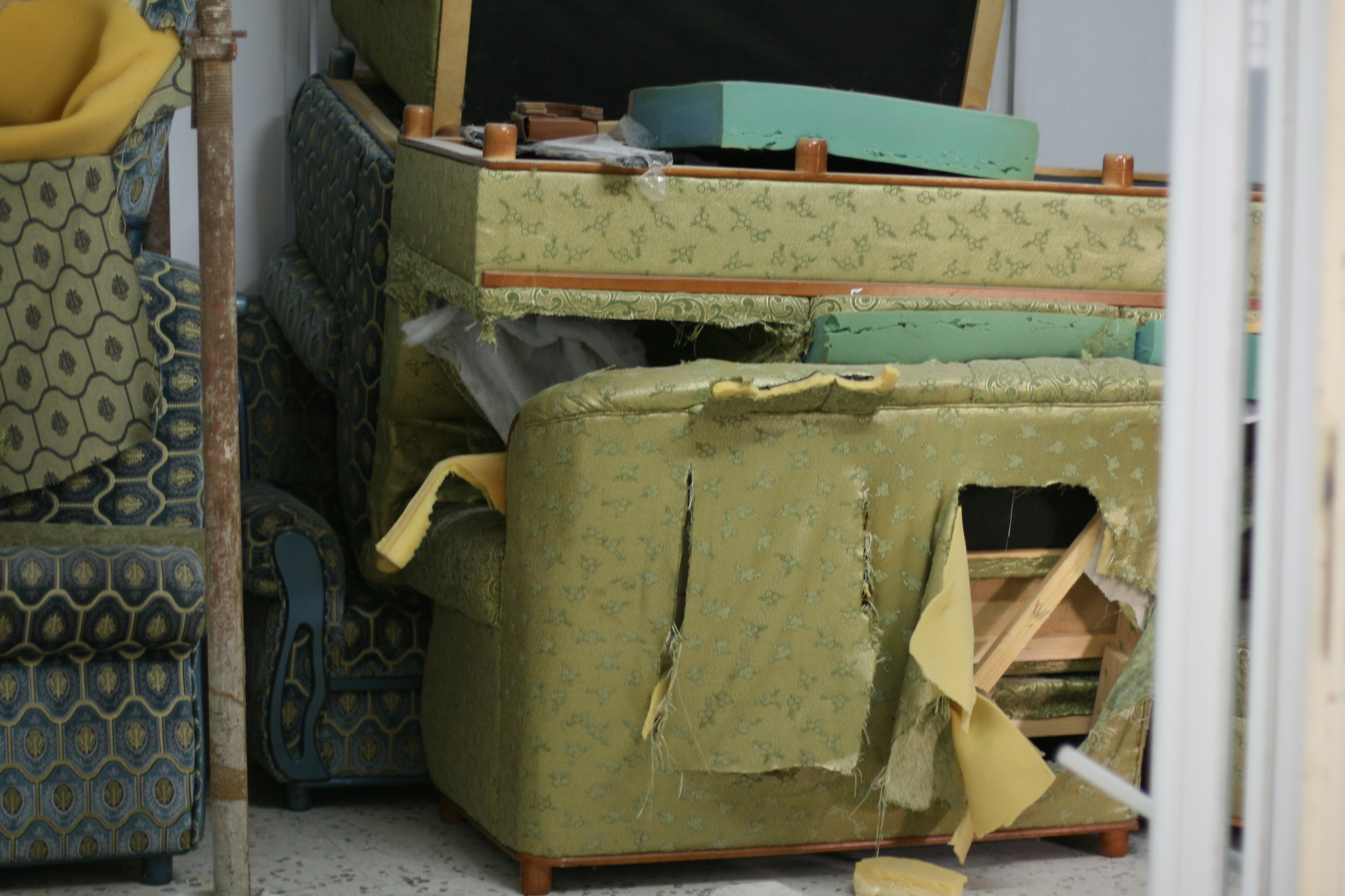 The fire destroyed the upstairs apartments of Marwan’s brothers, Bilal and Shareef. On Wednesday, his extended family shuffled between the courtyard and the house after two days of clearing rubble. The ceilings were held up by rusted metal pipes which were brought, Rawan said, by the Hebron municipality this week.