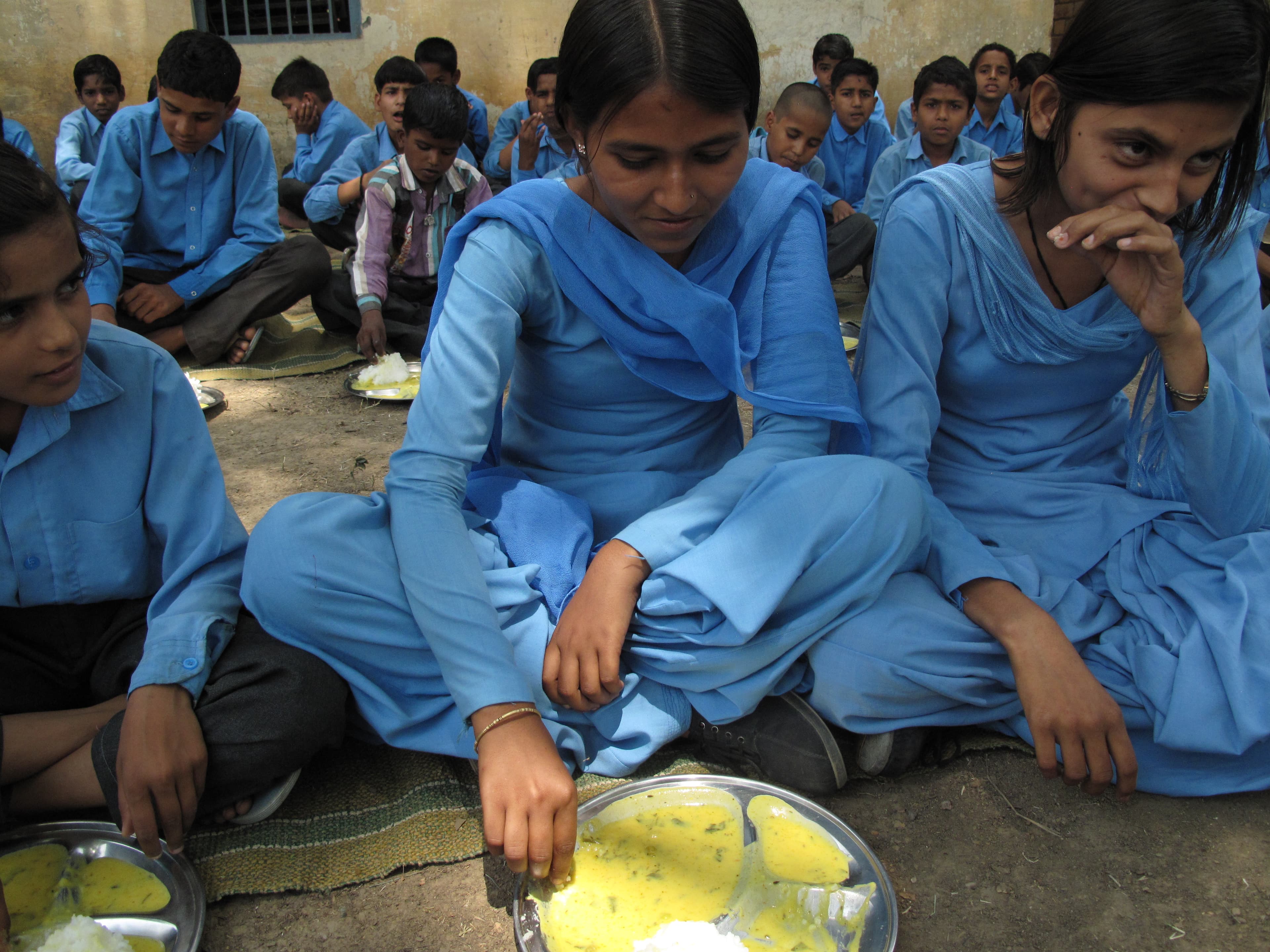 The vast majority of the children will sit next to each other on mats and eat the food, just as they do every day. That wasn’t the case, though, when India’s lunch program began at this school about a decade ago.