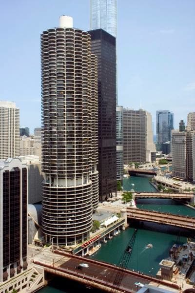 His only request is you get the name right. “My hide gets a little chafed when people call it ‘Marina Towers,’” he says, noting that the twin 60-story high rises are just part of a complex including smaller buildings like Chicago’s House of Blues.