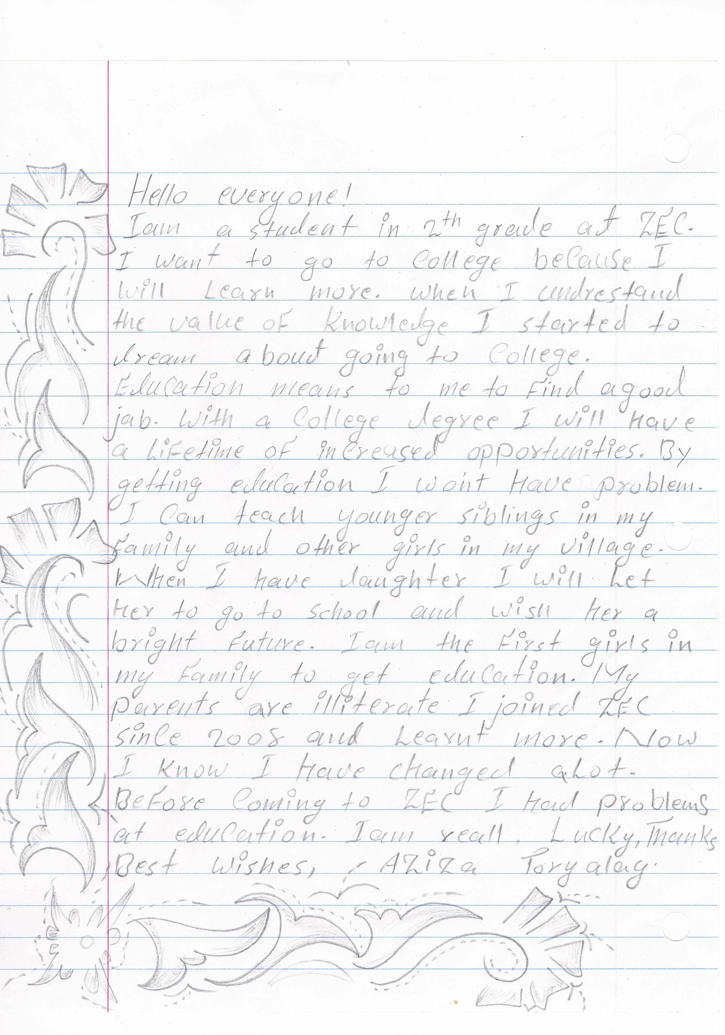While a fundraiser by ZEC founder Razia Jan to build the girls a technical college is underway, for now, graduates have no where to continue their educations, putting them at risk of child marriage. As an excercise in ambition and hope, the girls were prompted to write college application essays.