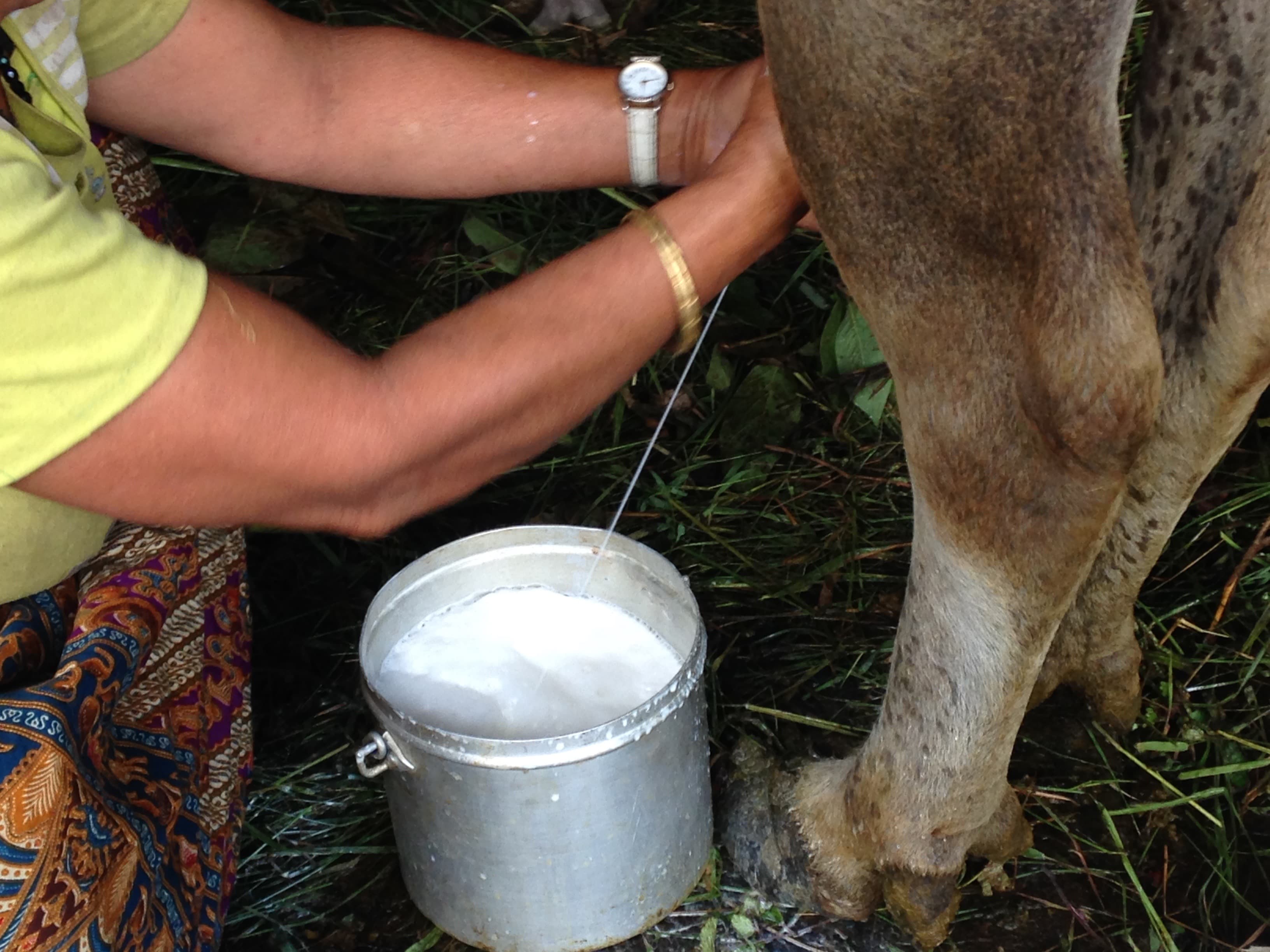 Farm animals play a vital role in the lives of rural Nepalis. Buffalo are raised for milk, and their waste is used for fertilizer and mixed in to the mud in traditional stone houses. Goats are sold for meat, oxen plough and chickens provide eggs. People like Aamaa and Binda spend most of their day caring for their livestock, beginning with milking in the morning, then cutting grass for feed and carrying it home in heavy loads each afternoon.