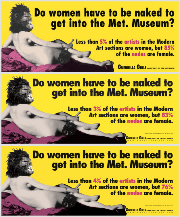 These posters, critiquing the Metropolitan Museum of Art in New York, are from 1985, 2005 and 2012: