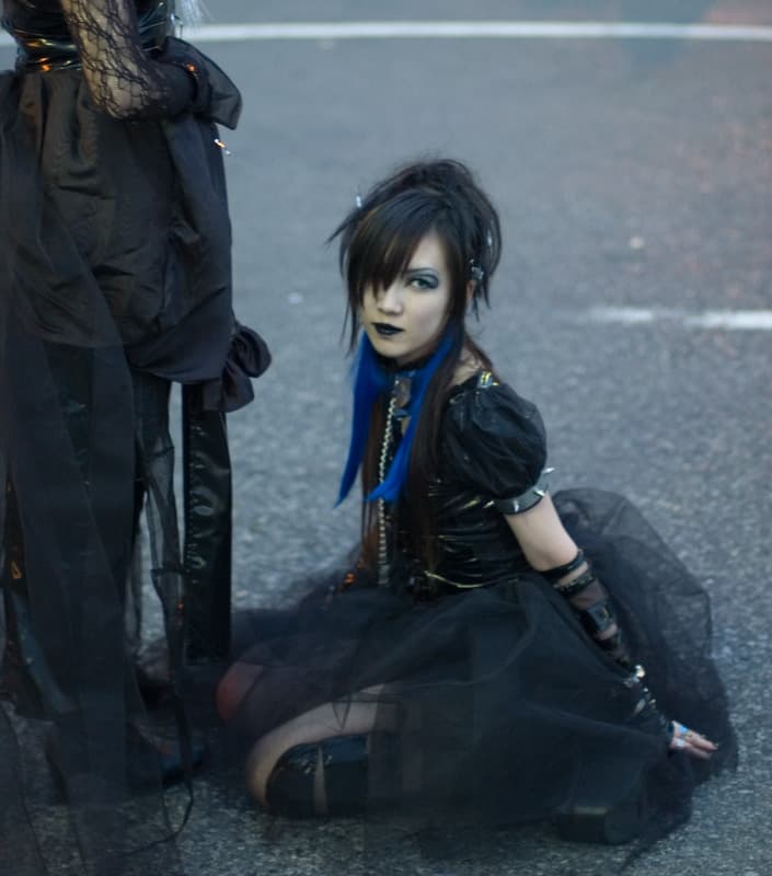 This girl is actually cosplaying the bassist of Dir en Grey, but it’s a pretty exemplary goth look.