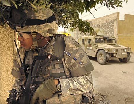 U.S. Army soldier provides perimeter security during an Iraqi police patrol in Kirkuk, Iraq, on April 24, 2007. (Photo: US Army, Flickr)