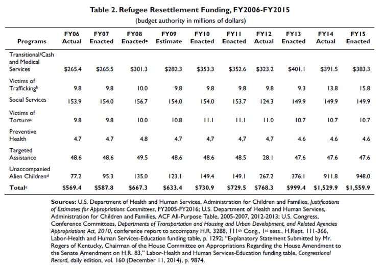 They also help care for the thousands of children who have crossed the southern border alone, largely to escape violence in Central America. Almost 60,000 children crossed in the past year, according to Border Patrol. The nonpartisan National Conference of State Legislators has found that caring for these children has increased considerably over the past decade — in 2015, the cost of refugee resettlement was $1.5 billion — but it remains a sliver of the larger HHS budget.