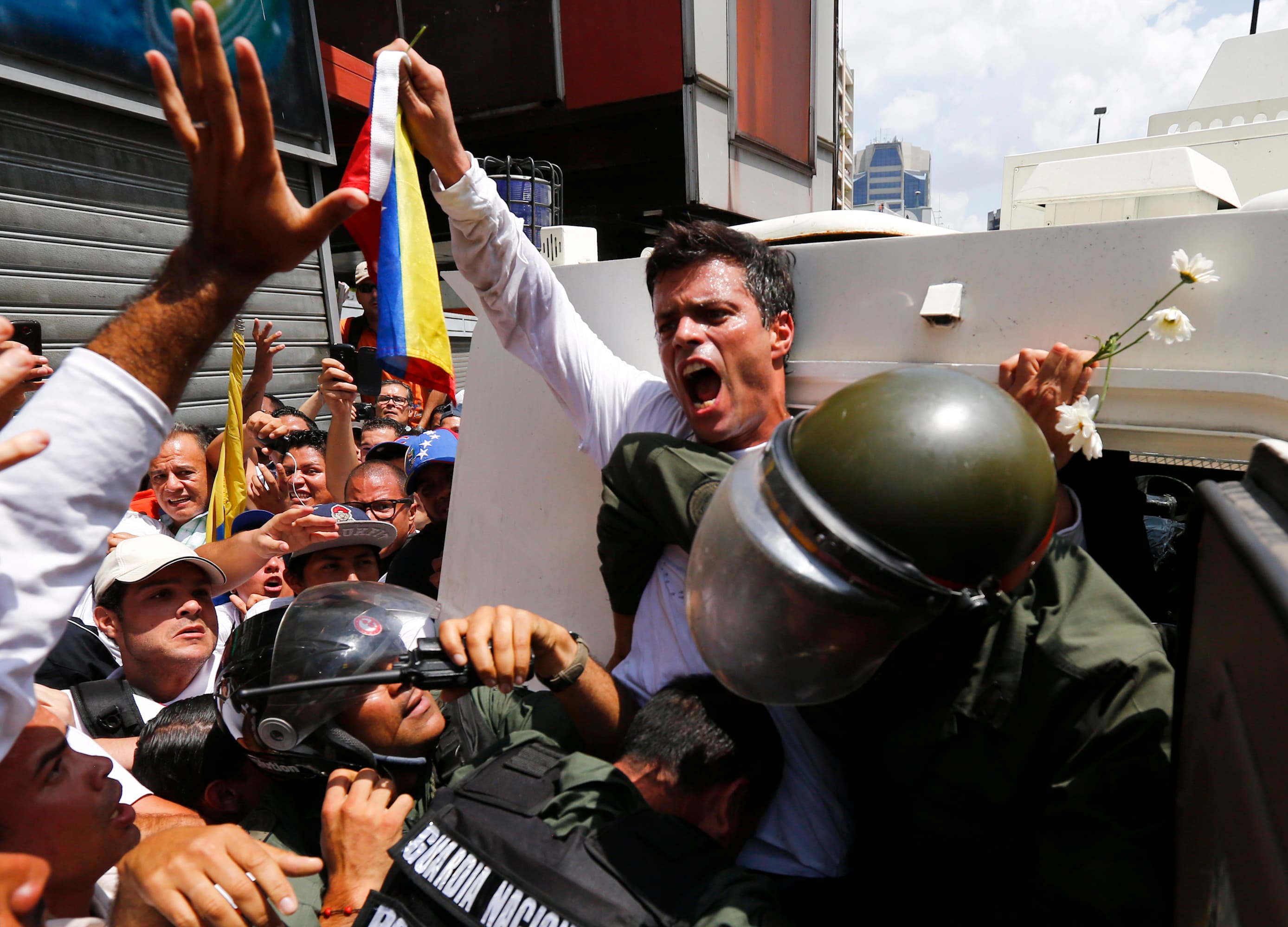 Two other prominent opposition leaders jailed by the government on similar charges have since been moved to house arrest — Caracas mayor Antonio Ledezma and the former mayor of the western city of San Cristobal Daniel Ceballos.