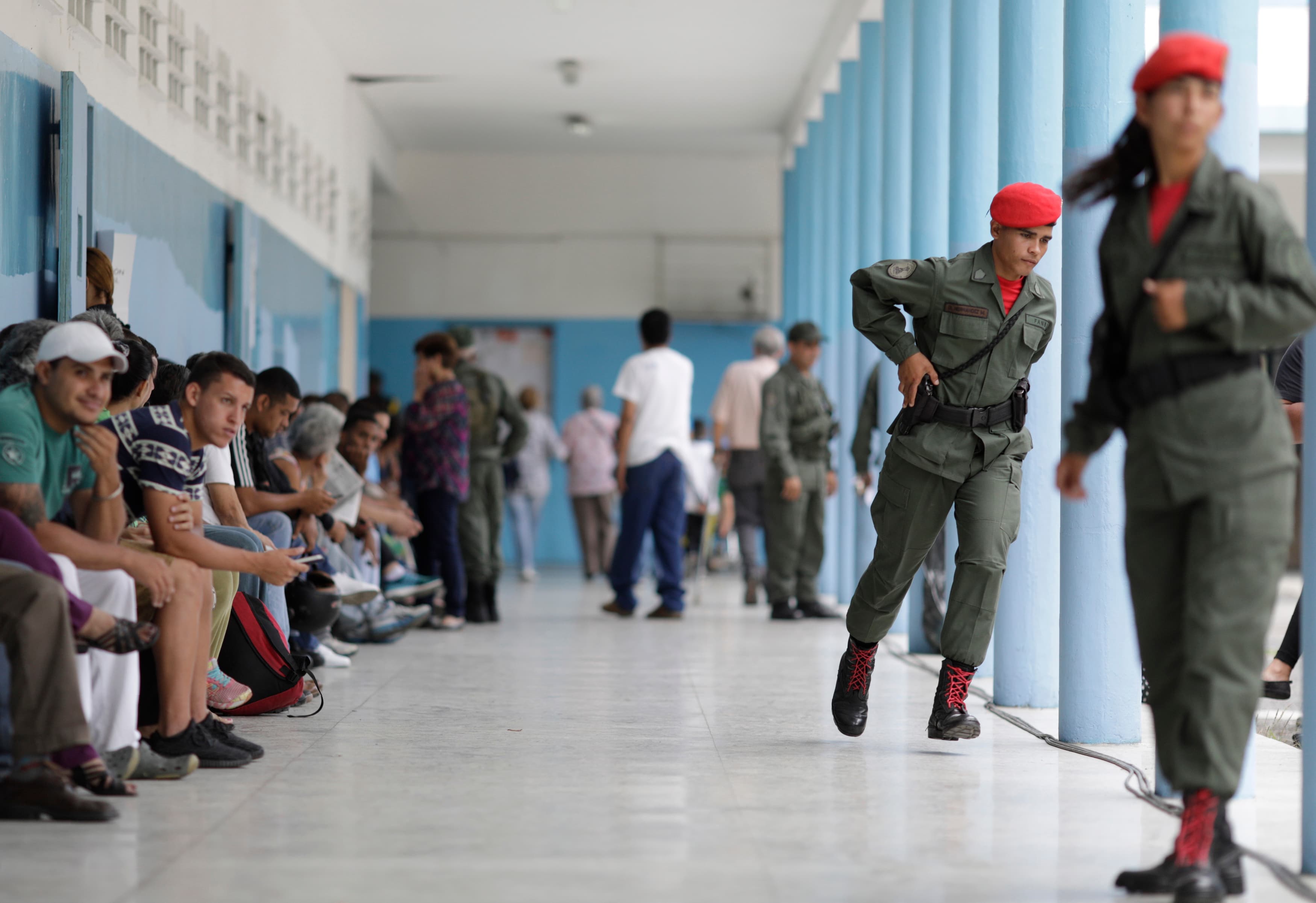 In the west of Caracas, national guard troops fanning out to put down any disruption to the election, used armored vehicles and fired shots to disperse protesters blocking roads.