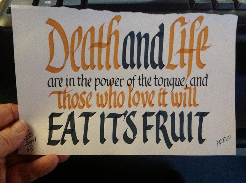 Garman Herigstad not only finished hand-lettering the Book of Proverbs in calligraphy, he finished it early — on December 20th. Even as he kept up the pace through the year though, Garman was worried that his technique wasn’t improving. “And then I went back and looked through the pile of things I did in January,” he tells Kurt, “and I’m like, ‘Oh yeah, it’s a lot better!'”