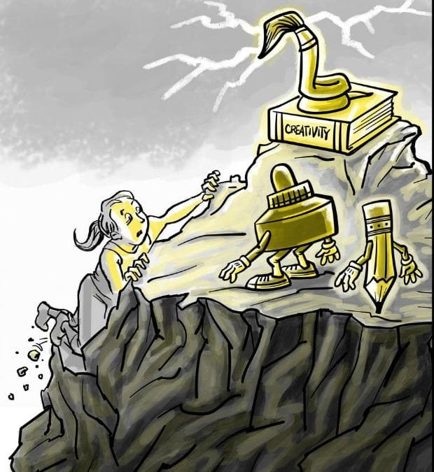 For Studio 360’s Doodle Dare, Alison Bechdel started an image — you must finish it. Several artists drew her girl fighting the enemy within.