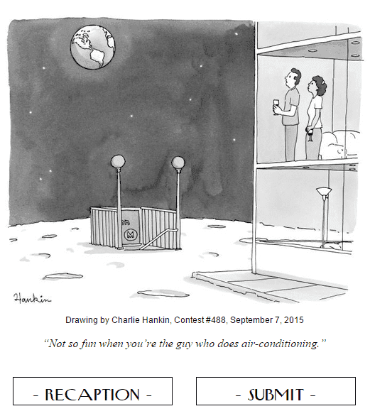 Two dudes at the Verge made a New Yorker cartoon caption generator this week to help just about anyone try and win the magazine’s decade-old caption contest. They took the first, second, and third place winning entries, all 1,425 of them, and ran them through a text generator that analyzes the winners and creates new, totally random entries that echo the original set. Even if you don’t end up winning, it’s a great way to pass some time.