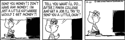 Schulz,Melendez, and Mendelsonwould makedozens ofPeanutsspecials together. And, of course, the Peanutscharacters went onto sellall kinds of grown-up stuff — Snoopy continues to rep life insurance. Had they not first proven their worth hawking product, we would never have heard Schroeder playing “Linus and Lucy”or seenSnoopy dogfight withthe Red Baron.But seeing thempalling around with that unctuous pitchman with the chocolate cigars is enough to make anyone a little depressed.