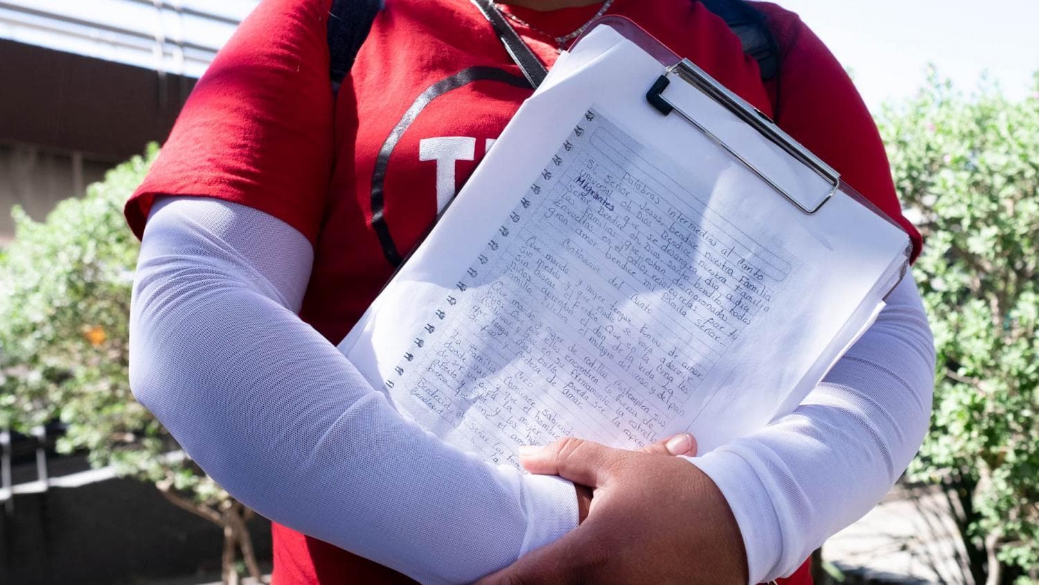 Still, she said, seeing all of the families gathered here motivates her to keep fighting for their rights. She clutched a clipboard with handwritten song lyrics and a testimony that she read to the crowd.