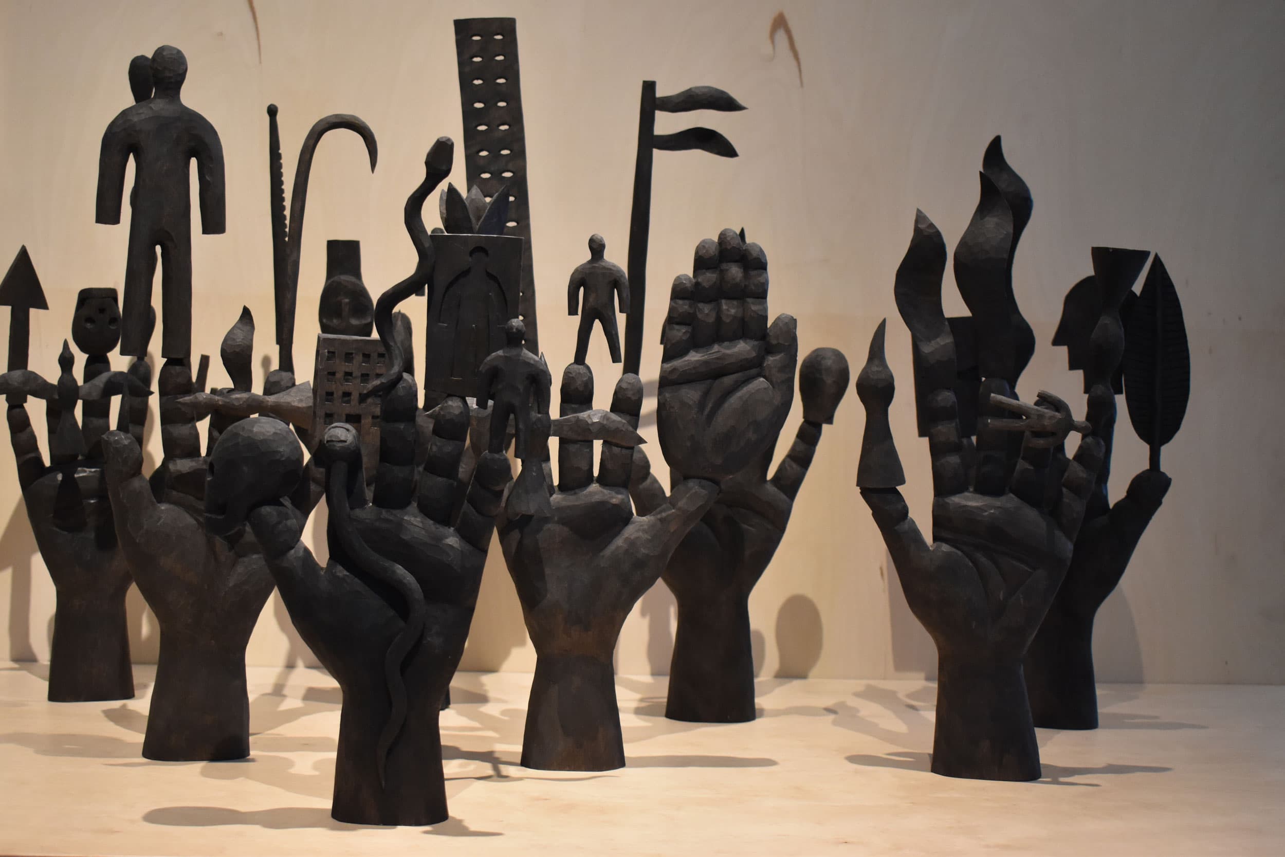 “Sign Language,” a startling sculptural work by Konstantin Zorkin, also stood out among the many provocative paintings, photographs, sculptures and video installations at the exhibition.