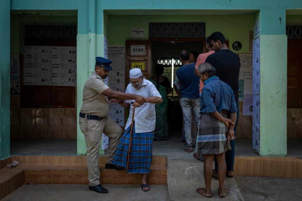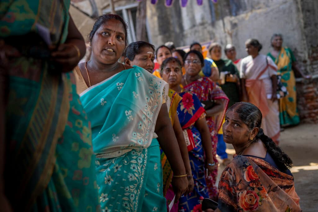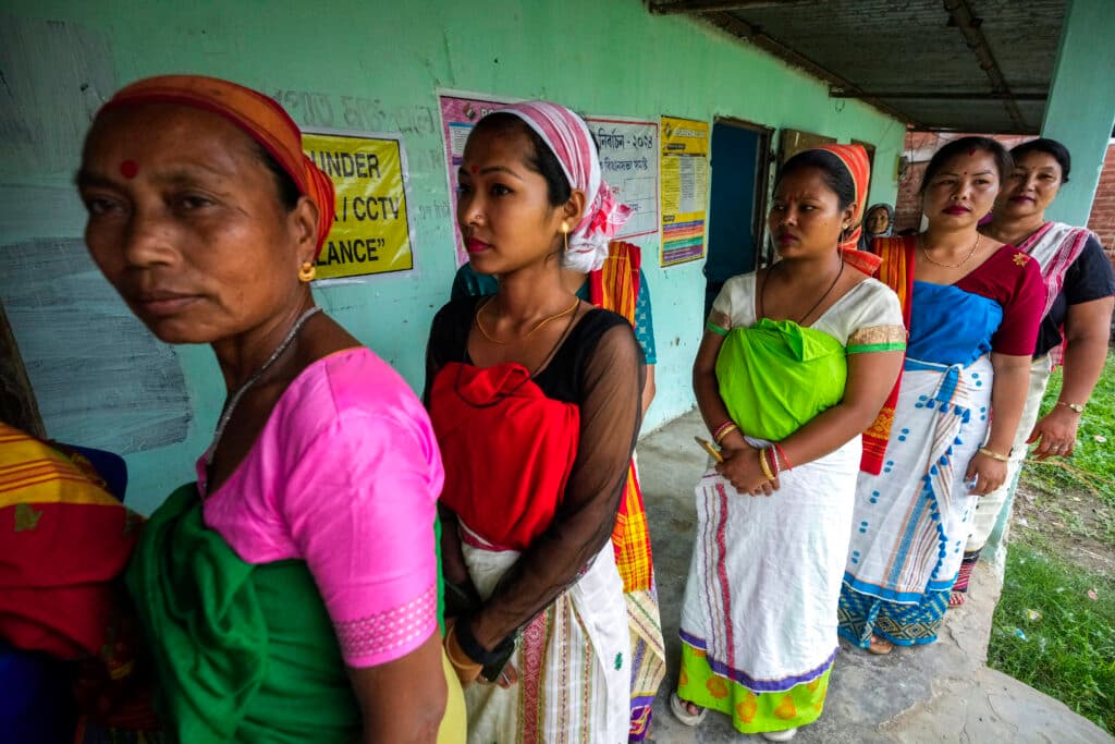 People wait to cast their votes during the first round of polling of India’s national election in Chennai, southern Tamil Nadu state, Friday, April 19, 2024. Nearly 970 million voters will elect 543 members for the lower house of Parliament for five years, during staggered elections that will run until June 1.
