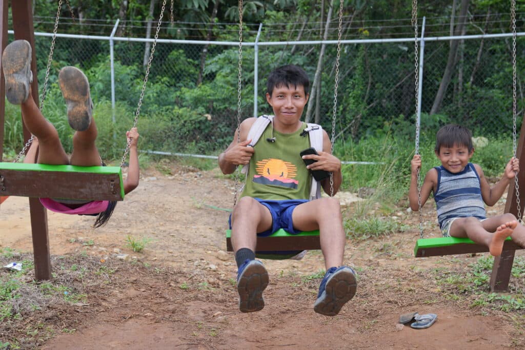 Kids play volleyball in the Panamanian village of Isberyala, while adults swing on hammocks in front of their homes as they try to cope with the tropical heat.