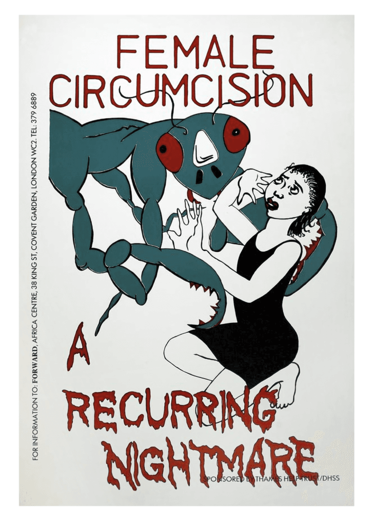 Anti-female genital mutilation poster from 1980, produced and published in the UK by the Africa Centre for distribution in Somalia, which has one of the highest rates of female genital mutilation.Courtesy of FUEL Publishing