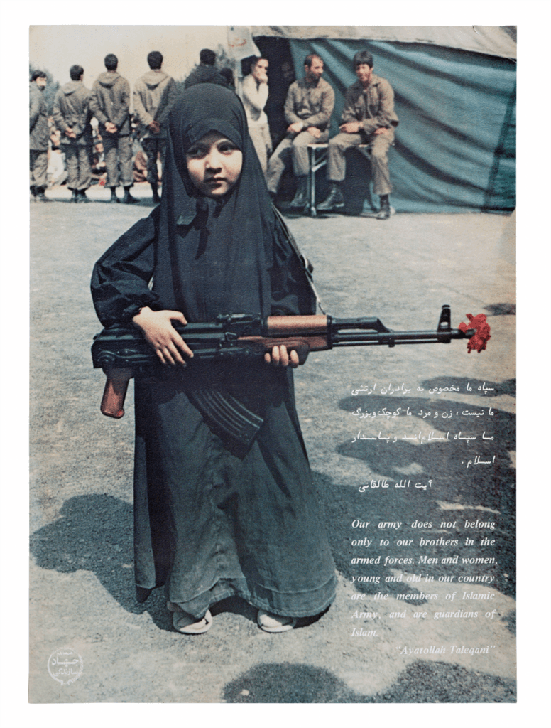 “Our revolutionary guard does not belong only to our brothers in the armed forces. Men and women, young and old in our country are the members of the Islamic Army, and are the guardians of Islam.” A quote from Mahmoud Taleghani, a prominent leader during the revolution of 1979 against the Shah.Courtesy of FUEL Publishing