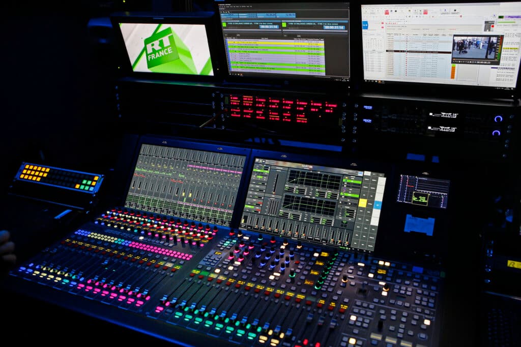 The mixing and editing desk at RT France is pictured in Paris, Jan. 9, 2018.Francois Mori/AP/File photo