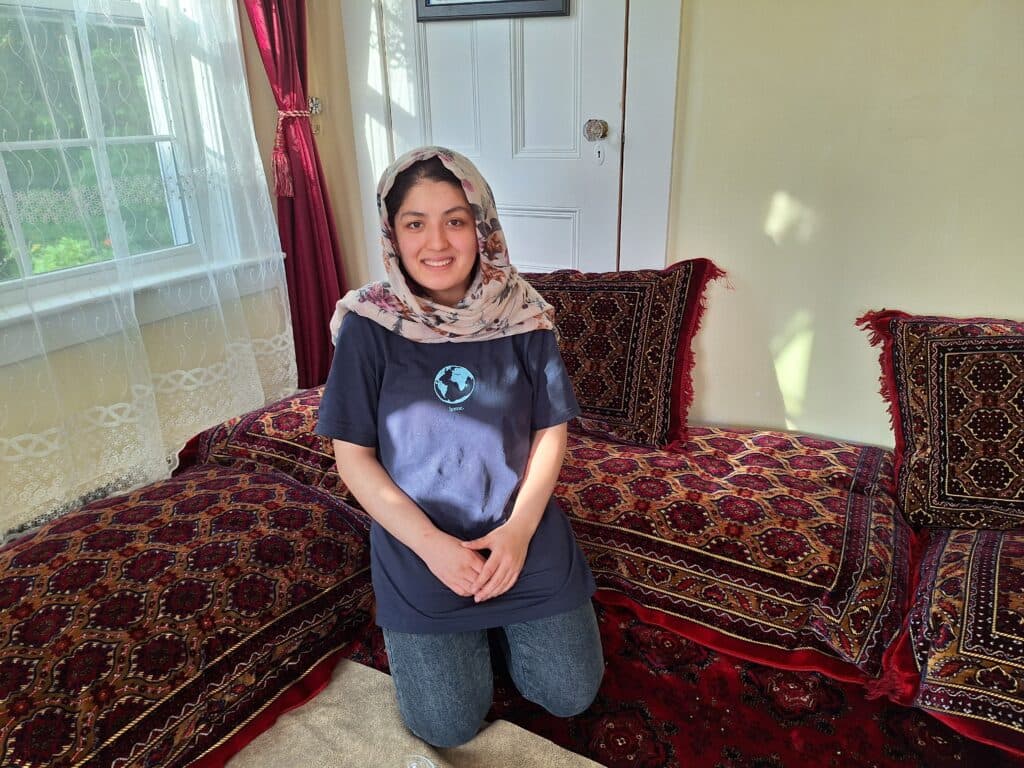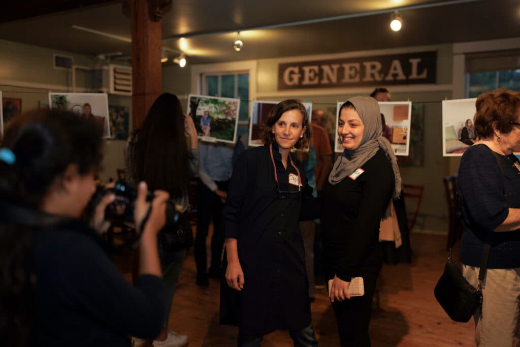 Recently, Behishta and photojournalist Jodi Hilton teamed up on a project that features framed still photos that come to life through a phone app called Artivive. The project profiles Afghan refugees in Beshista’s new town and the volunteers supporting them. She wanted to record their stories in their own words.