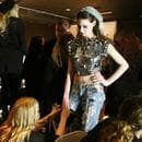 Model Cara Delevingne has her hair styled backstage during London Fashion Week.