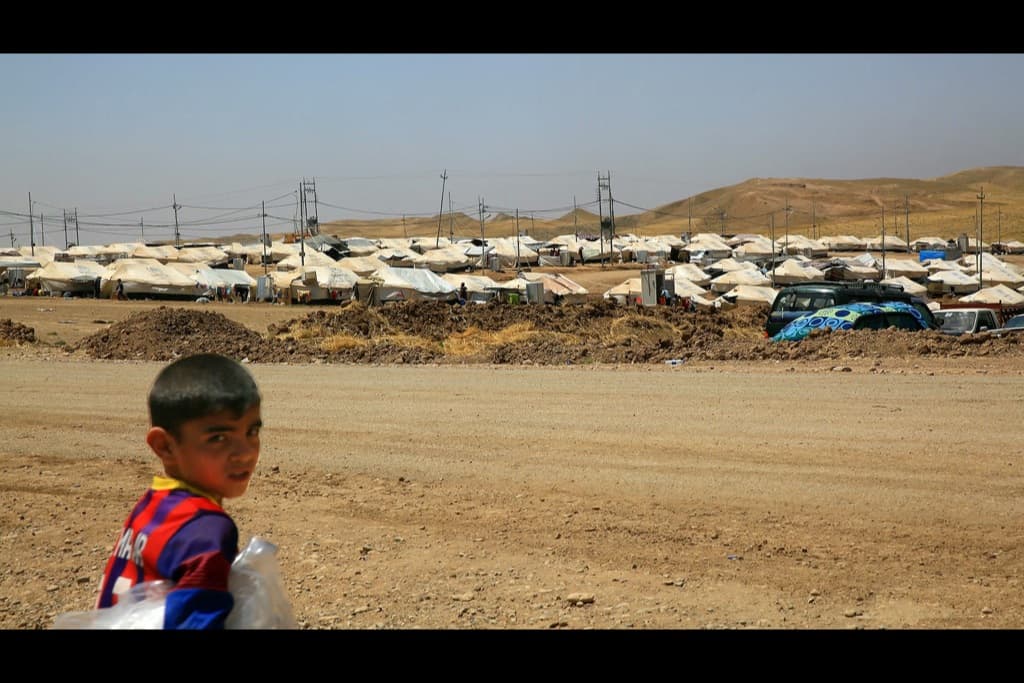 A boy, displaced from fighting in the Islamic State stronghold of Raqqa, walks in the desert near the village of Karama, east of Raqqa, July 1st 2017