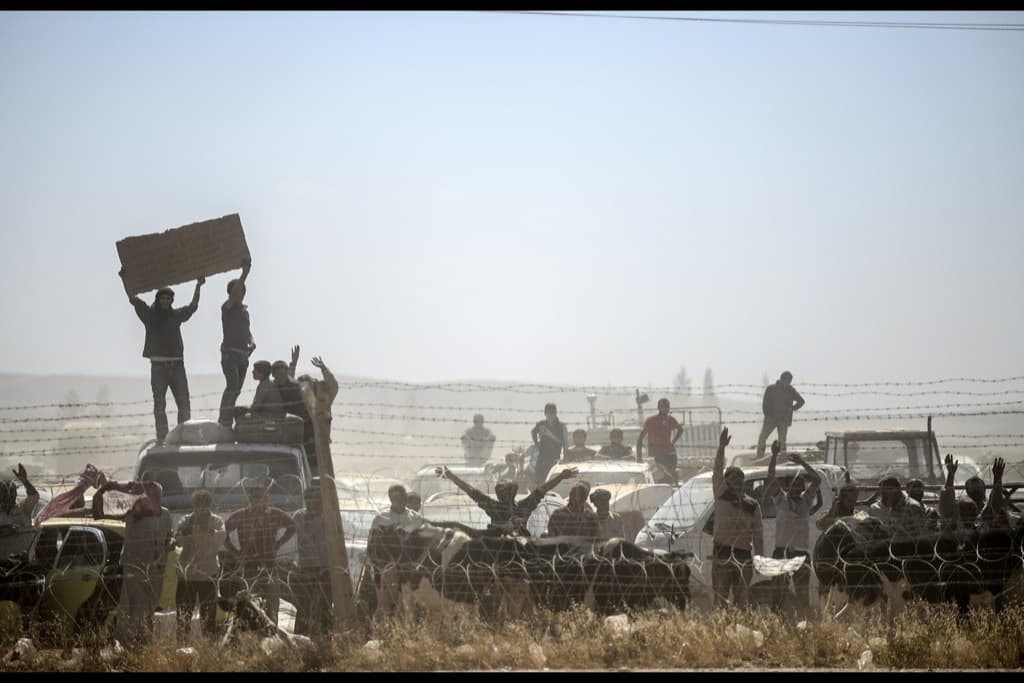 Turkish tanks driving toward Karkamis on the Turkish-Syrian border in the southeastern Gaziantep province, Turkey, on Aug. 27.